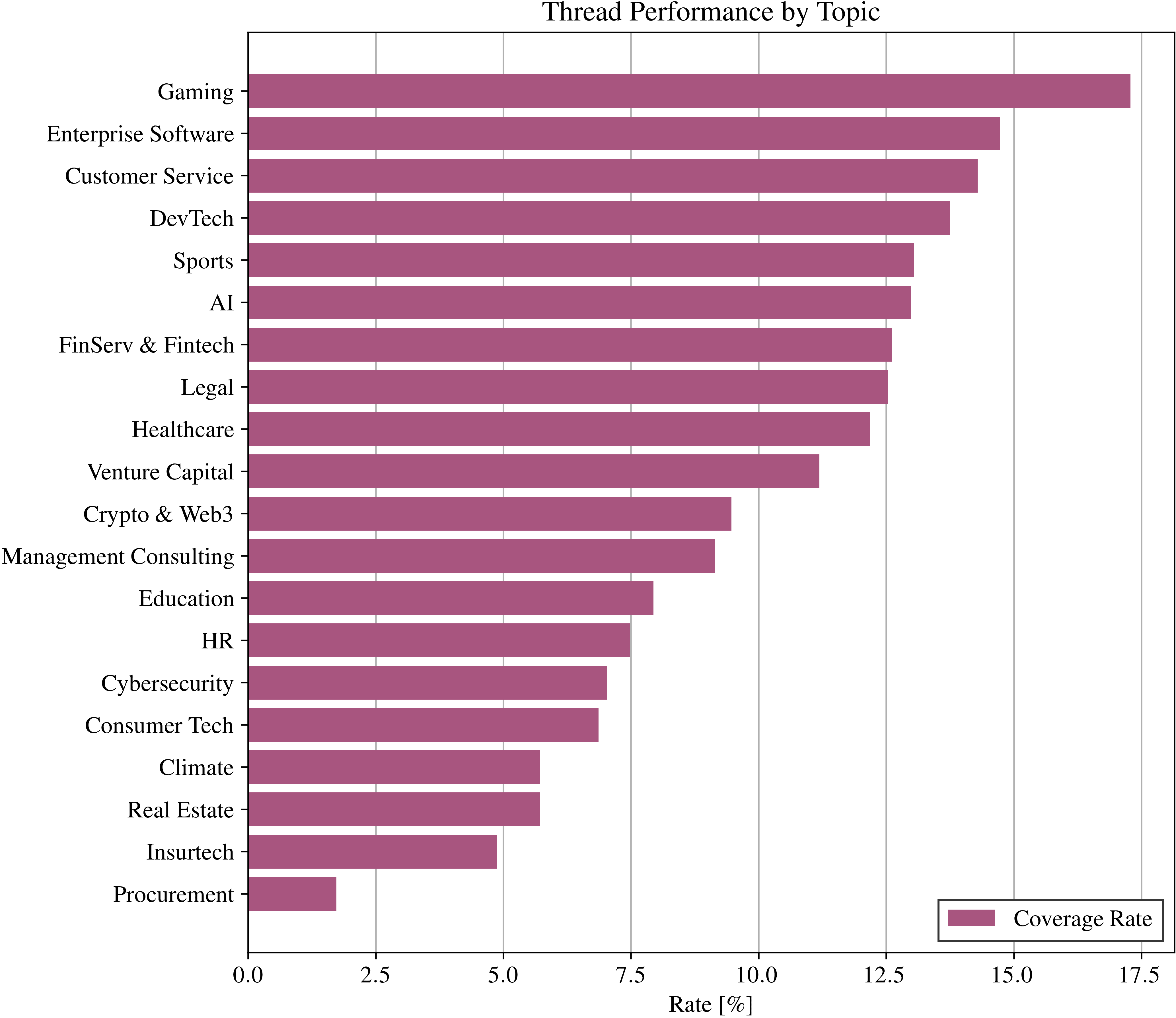 Understanding key PR metrics is no longer optional—it's essential for any forward-thinking brand. Our recent analysis of thread performance across various industry topics revealed a number of compelling patterns that can help communications leaders make more strategic decisions about where and how to focus their PR efforts and foster closer relationships with journalists.