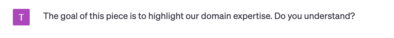 Whether it's promoting a product or establishing domain expertise, sharing the goal of the article will help ChatGPT understand the desired outcome, meaning it will know before hand that it's trying to create a main course, rather than a dessert.